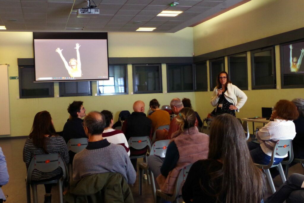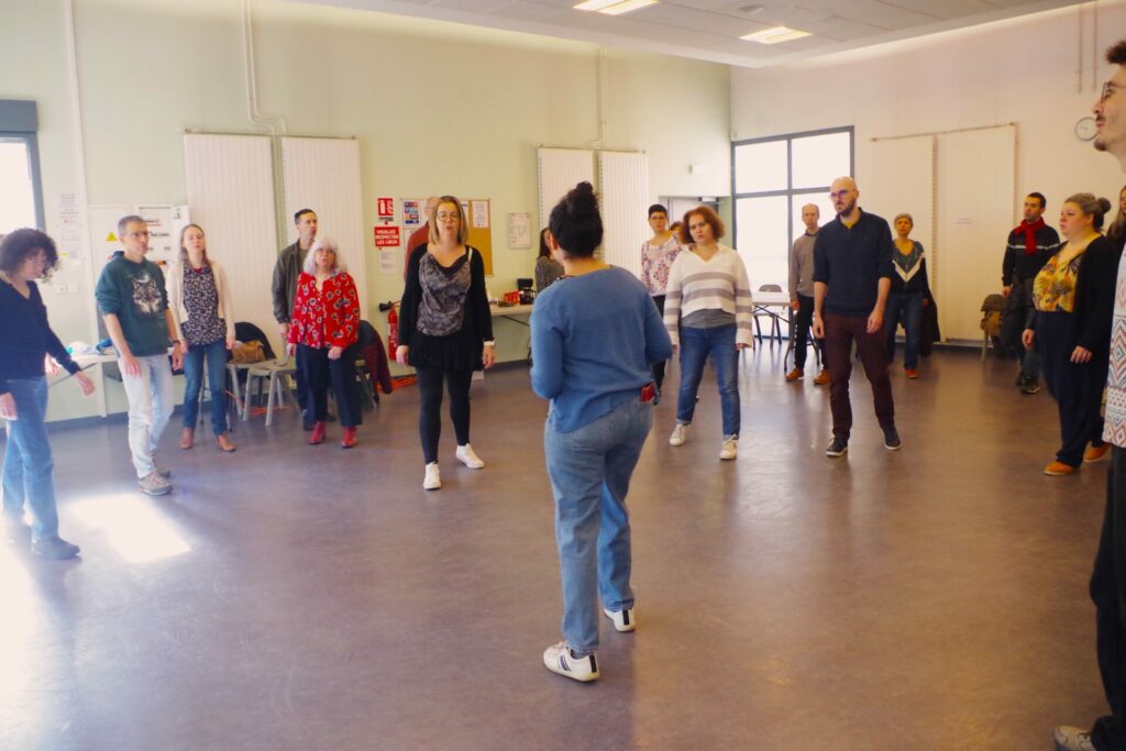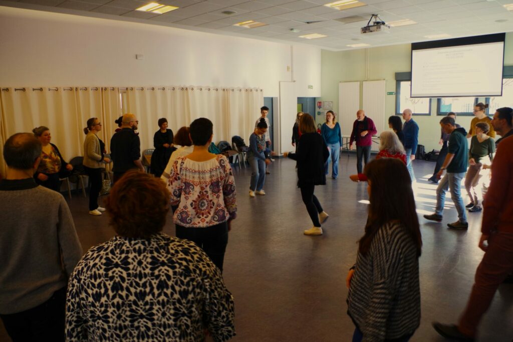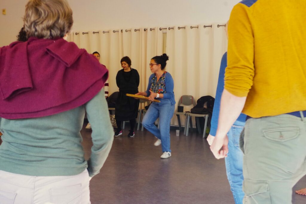 La matinée démarre par un atelier de pratique collective, chanté et dansé, animé par Annabelle Rougemont, merci à elle pour son dynamisme contagieux et cette belle mise en mouvement !